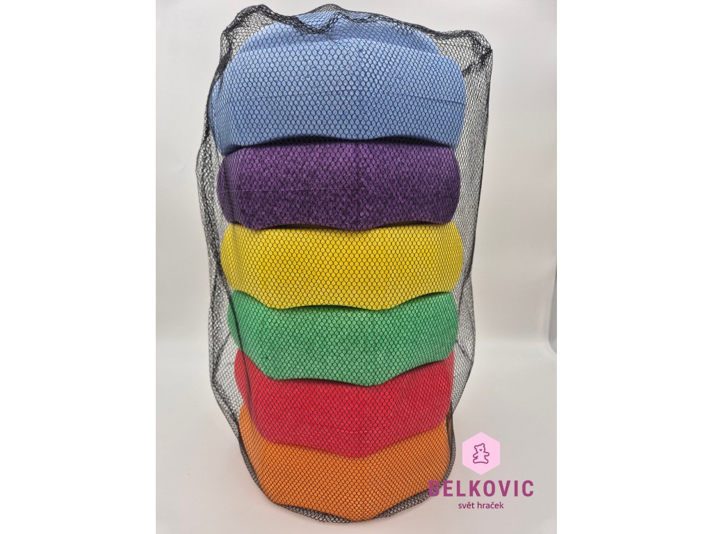 Barevná sada obsahuje 6 kusů, které lze snadno stohovat, přenášet a kombinovat v pohybových hrách, překážkových drahách nebo cvičeních zaměřených na posílení středu těla. Díky odolnosti je můžeš používat doma, v herně, ve školce i venku na zahradě.