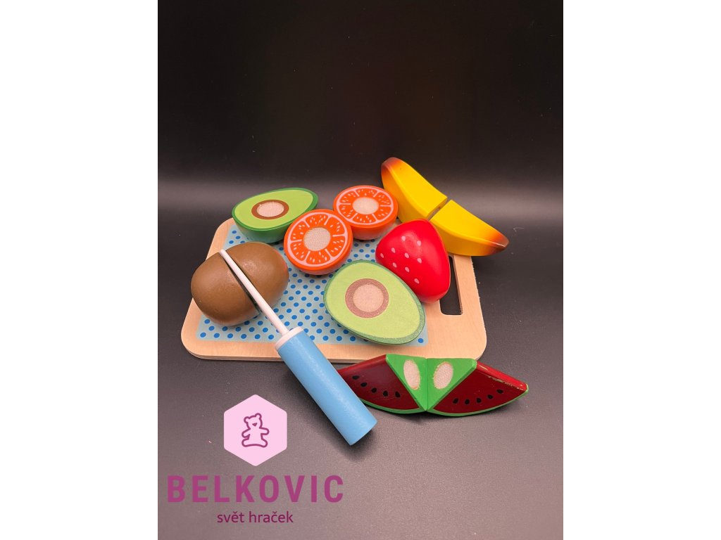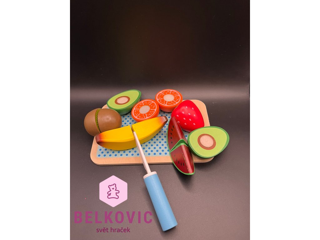 Barevná dřevěná sada ovoce potěší každého malého kuchaře! 🍓🍌 Obsahuje krájecí prkénko, bezpečný nůž a šest druhů ovoce, které lze díky suchému zipu rozdělit na poloviny. Ideální hračka pro rozvoj jemné motoriky a procvičení koordinace ruky a oka.