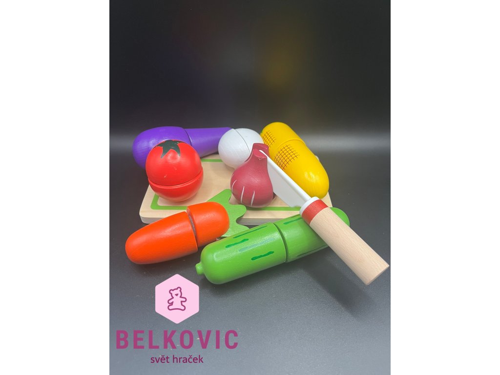 Tahle krásná sada dřevěné zeleniny promění každé dětské vaření v opravdovou kuchařskou zábavu. Díky pevnému provedení, sytým barvám a realistickému vzhledu si děti užijí přípravu „jídla“ jako dospělí. Jednotlivé kusy zeleniny jsou spojené suchým zipem, takže je lze snadno krájet a znovu spojovat.