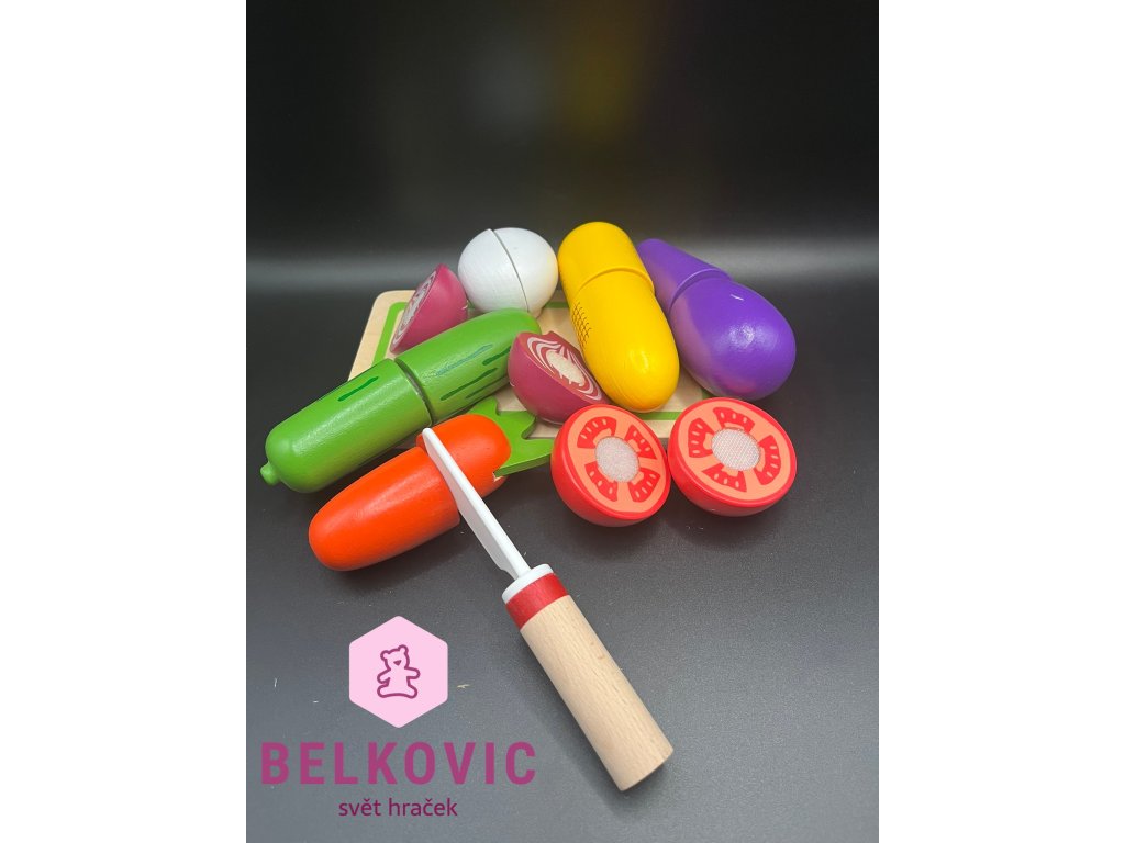 Výborně se hodí pro hru v dětské kuchyňce, k učení barev, rozvíjení jemné motoriky a prvních dovedností při práci s nožíkem. Součástí je i prkénko a bezpečný dřevěný nůž – vše přesně padne do malých dětských rukou.