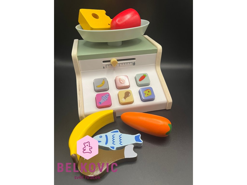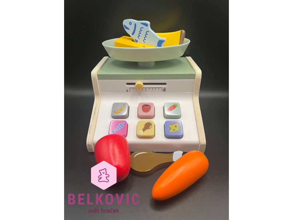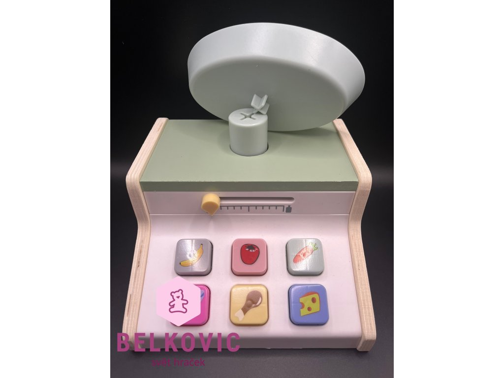 Hodí se jako doplněk k jakékoli dětské kuchyňce nebo obchůdku a skvěle funguje i jako samostatná hračka. Díky kvalitnímu zpracování a jemným pastelovým barvám působí krásně a moderně.