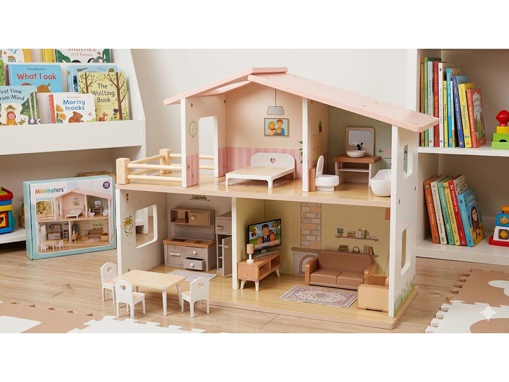 Domeček od Mini Matters je kouzelná dřevěná hračka, která v dětském pokojíčku vytvoří prostor pro nekonečné hodiny kreativního hraní. Má dvě patra, krásné tištěné tapety a útulné místnosti, které působí velmi realisticky. Díky pevné konstrukci a promyšleným detailům je tento domeček trvalou hračkou, která v pokojíčku opravdu něco vydrží.