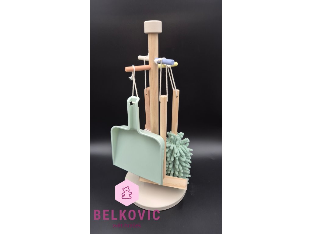 Krásná dětská úklidová sada od Mini Matters potěší všechny malé pomocníky, kteří rádi napodobují maminku nebo tatínka při domácích pracích. Stylový stojan ukrývá mini verze úklidových nástrojů – lopatku se smetáčkem, mop s měkkými třásněmi, kartáček i stěrku. Vše v příjemných pastelových odstínech a s precizním dřevěným zpracováním.