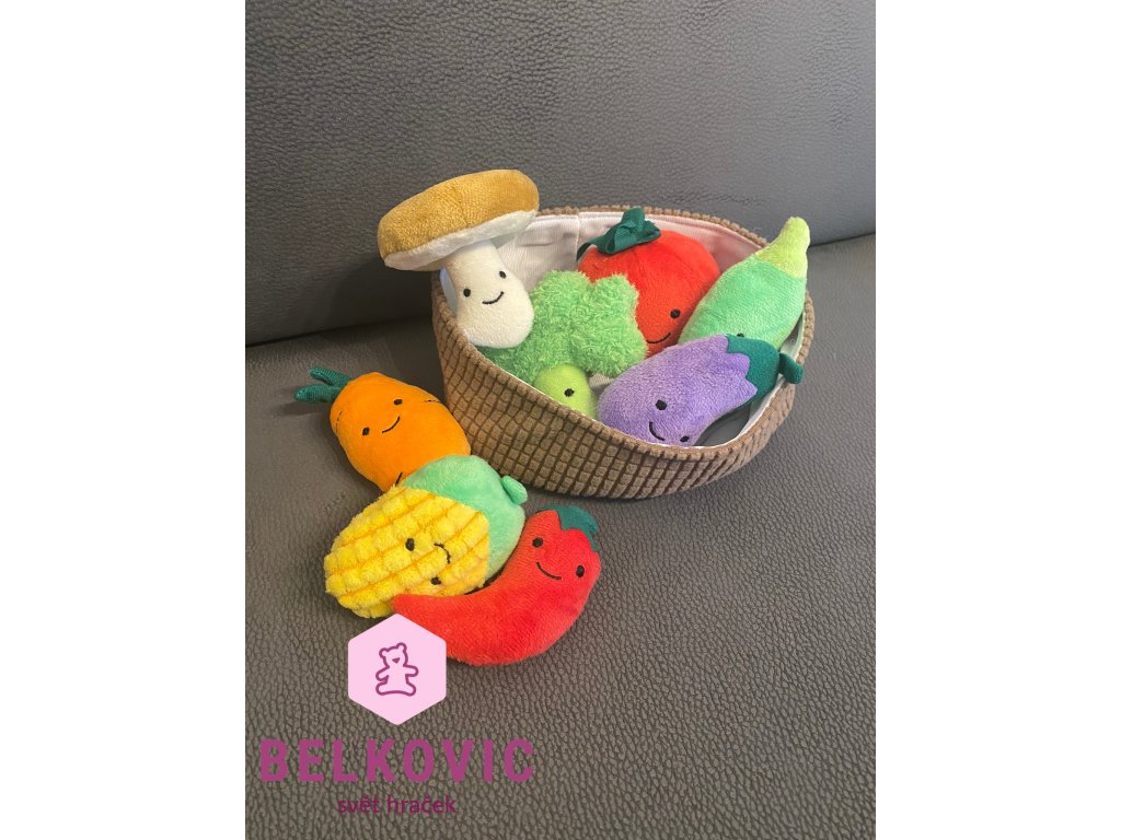 🌽 Až 9 kusů plyšové zeleniny včetně košíku.