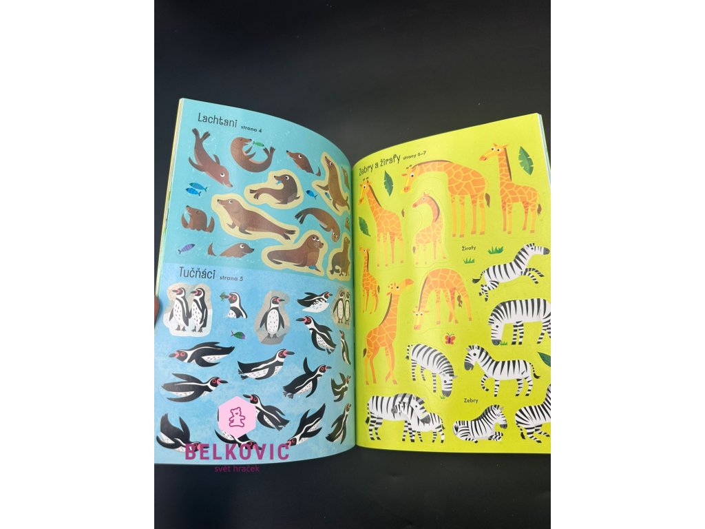 Kniha nabízí různé prostředí – akvárium, savanu, deštný les, výběh pro krokodýly i další kouty zoo – a každá stránka čeká na to, až ji děti dotvoří správnými samolepkami. Při lepení trénují jemnou motoriku, logické myšlení i poznávání zvířecích druhů.