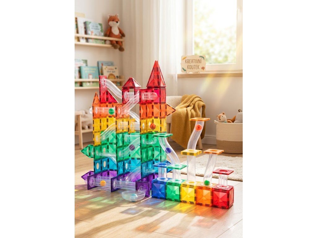 Tato kuličková dráha je skvělým nástrojem pro rozvoj logického a prostorového myšlení. Děti musí dopředu přemýšlet, jak dráhu poskládat, aby kulička hladce projela všemi zatáčkami a nekonečnými tubusy, čímž si hravou formou osvojují základy fyziky. Manipulace s magnetickými dílky a přesné napojování tubusů výrazně posiluje jemnou motoriku a koordinaci ruky a oka. Barevné provedení z průhledného plastu navíc stimuluje vizuální vnímání a podporuje estetické cítění při vytváření unikátních architektonických děl.
