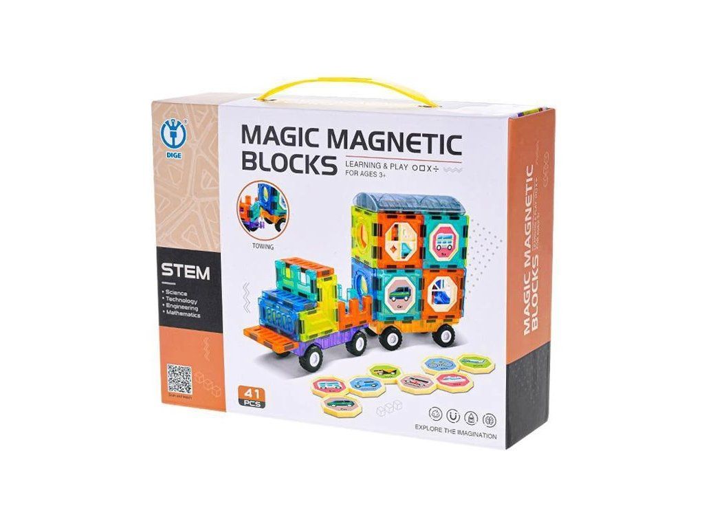 Tato barevná magnetická stavebnice Magic Magnetic Blocks přináší dětem spoustu zábavy i učení. Díky 41 dílkům mohou snadno skládat různá vozidla, přívěsy i jednoduché konstrukce. Magnety se pevně spojují, takže stavění je rychlé a přirozené.