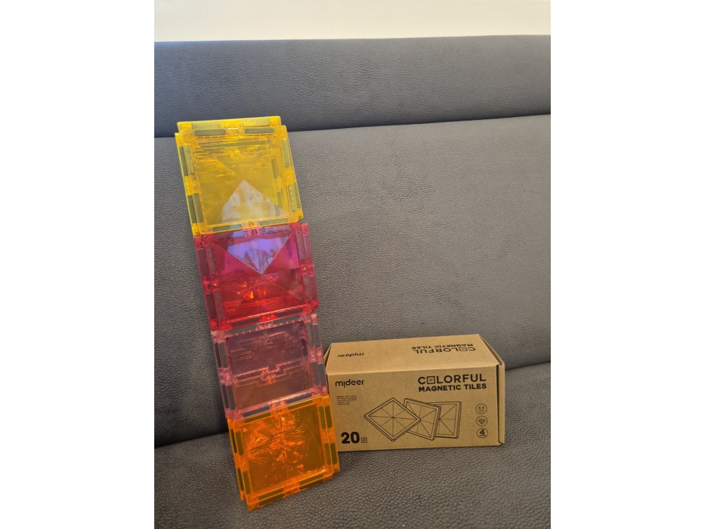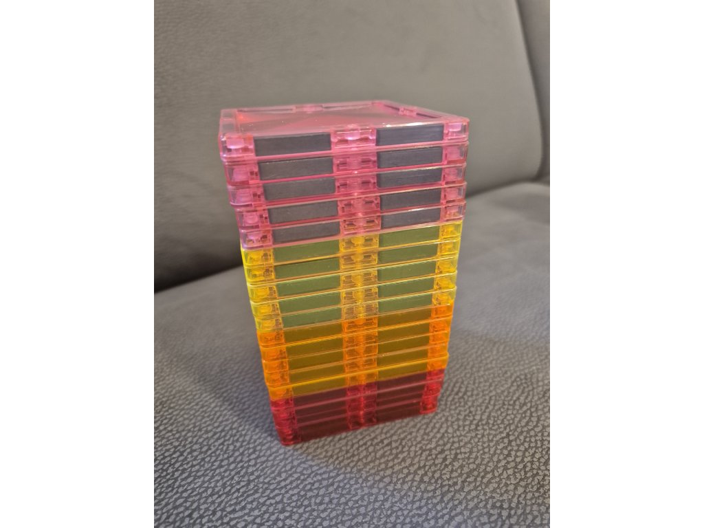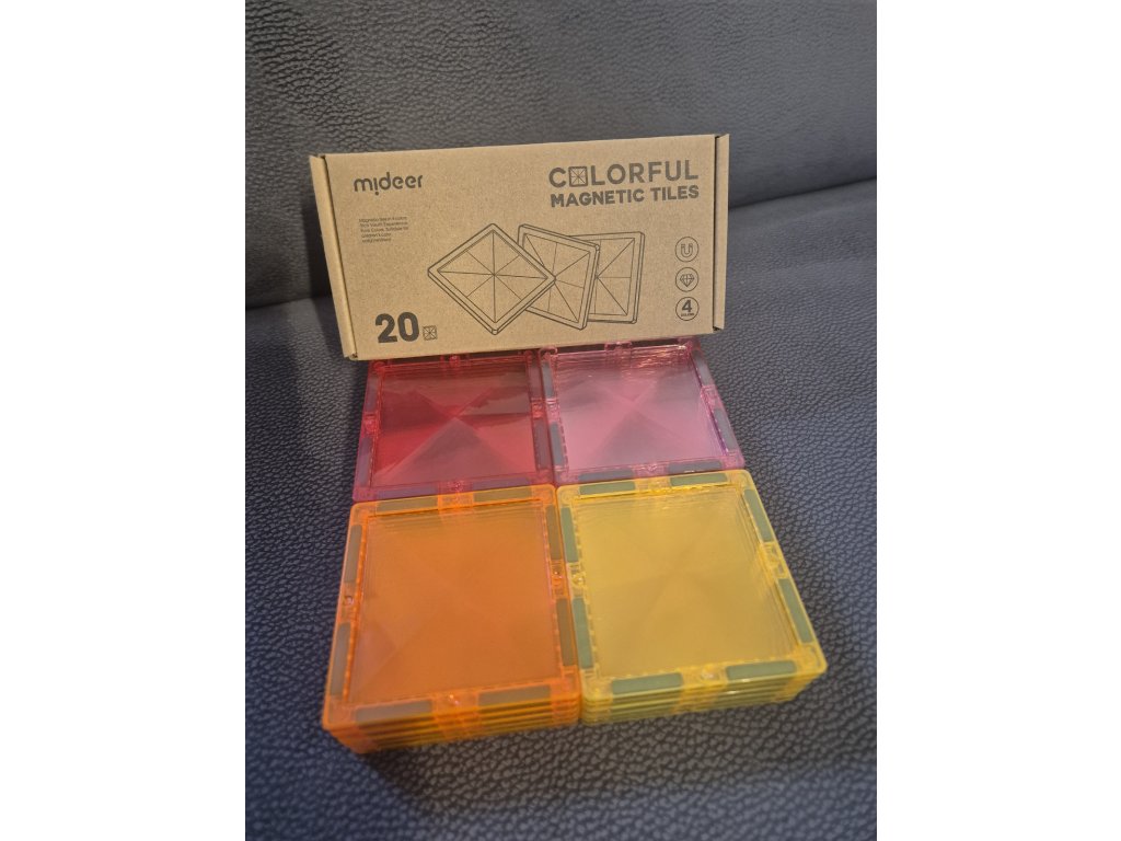 Tato sada obsahuje 20 magnetických čtverců v zářivých tónech červené, oranžové a žluté – ideální pro děti, které milují veselé a energické barvy.